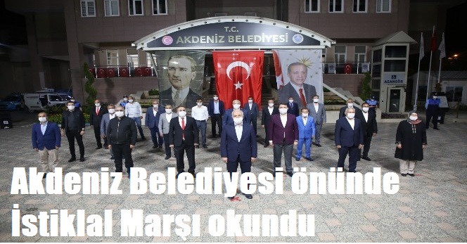 Cumhurbaşkanı Recep Tayyip Erdoğan’ın çağrısıyla, tüm yurtta olduğu gibi Mersin’in merkez ilçe Akdeniz Belediye binası önünde de ‘TBMM’nin açılışının 100. Yılı ve 23 Nisan Ulusal Egemenlik ve Çocuk Bayramı’ dolayısıyla İstiklal Marşı okundu.