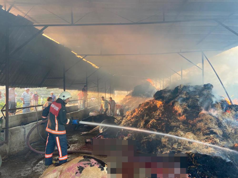 Tarsus’ta ahırda çıkan yangında 13 büyükbaş hayvan telef oldu.