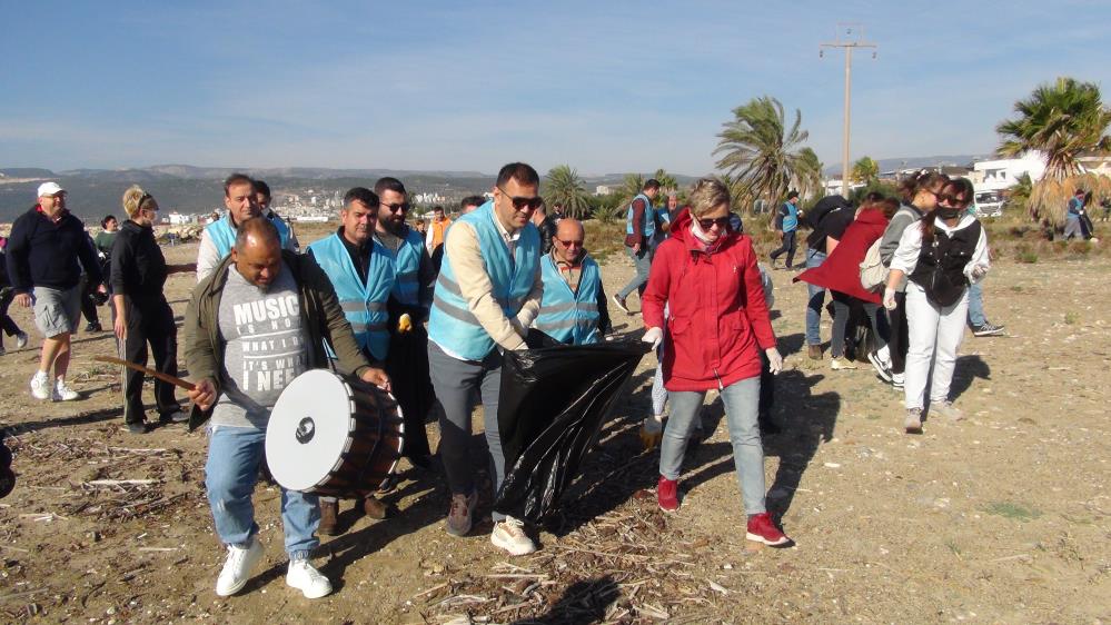 Mersin’de vatandaşlar ve Ruslar Silifke ilçesine bağlı Kum Mahallesi sahilinde davul eşliğinde temizlik çalışması yaptı.