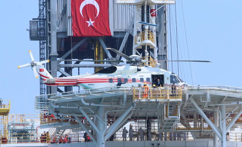 Cumhurbaşkanı Recep Tayyip Erdoğan, Abdülhamid Han sondaj gemisine helikopterle iniş yaptı. Erdoğan’ın helikopteri inmeden önce Mavi Vatandaki filonun “en güçlüsü” olan gemiyi 3 kez turladı.