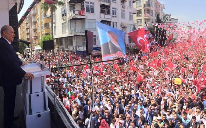Bahçeli, Mersin Millet Bahçesi yanındaki miting alanında, partisince düzenlenen ‘2023’e Doğru: Aday Belli, Karar Net’ mitinginde vatandaşlara seslendi. 2023’de tarihi bir seçim yapılacağını söyleyen Bahçeli, “Ne yaparlarsa yapsınlar zilletin fermanını kabul ettiremeyecekler. CHP ve altılı masa tamamıyla yabancıların elindedir. Türkiye’ye ABD ve İngiltere’den bakan kiralık akıl hocaları, Atatürk’ün partisinin kılavuz kaptanları haline gelmiştir. CHP yönetimi dersini tarihimizden değil Türk ve İslam düşmanlığından almıştır. CHP hastadır. Bu hastalığın adı da işbirlikçiliktir. Millet ne diyorsa hüküm odur. Milletin üstünde hiçbir güç ve kudret olmayacaktır. Adalet herkes içindir, hukuk herkese lazımdır.